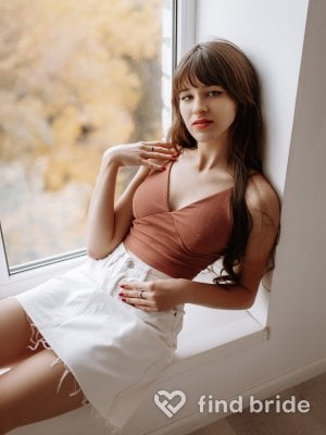 I value family traditions and for me the most important in life is to start my own family with someone lovely and kind. I like cuddling and laughing, noticing details that make this world amazing, the noise of waves, raindrops on the windows, sunny days at the seaside. Everyday is a real magic for me. I like smiling, thinking positively, and joking with friends. Someone could think that I have serenity of mind but that's not true. I just love every moment that life gives us. Would you like to become a part of my life?